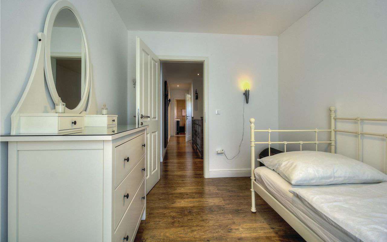 The interior of the villa features 4 bedrooms with 9 sleeping places, 2 bathrooms and a fully equipped kitchen and living room with internet and television. The villa contains towels and bedding for a longer stay.
